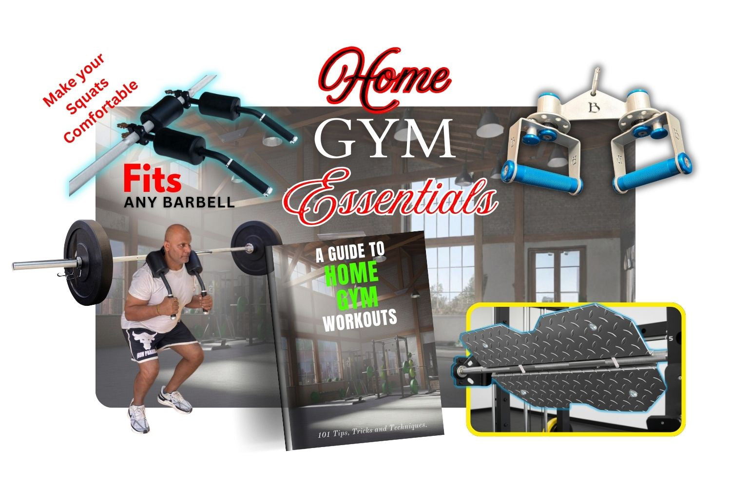 Squat Handles with cushions - Attaches to any barbell with ease - Make your squats comfortable